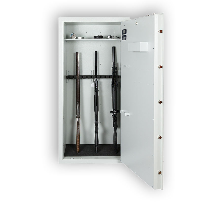 Die robuste und hochwertige Konstruktion sorgt für einen sehr guten Einbruchschutz in Kombination mit leichtem Feuerschutz. Der dreiwandige Tresorkorpus sowie eine spezielle Panzerung erhöhen die Widerstandsfähigkeit deutlich und schützen den Waffenschrank effektiv vor gewaltsamen Zugriffen.